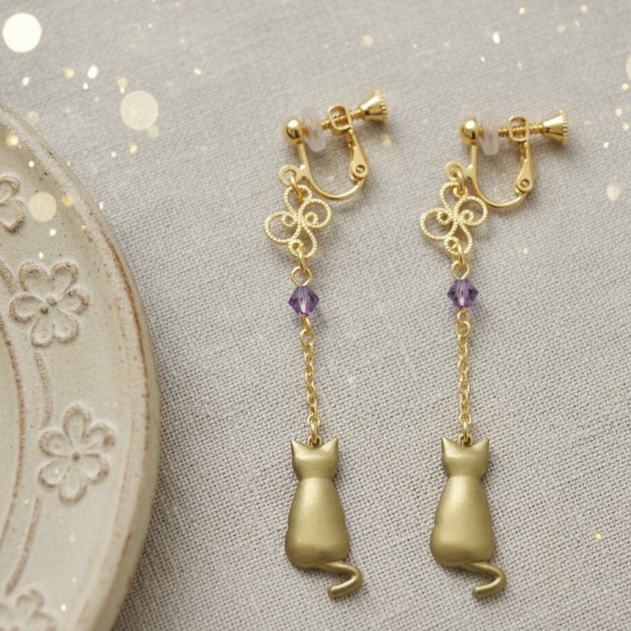 その気高く静かな姿を映したのが、この「星影の猫」イヤリングです。