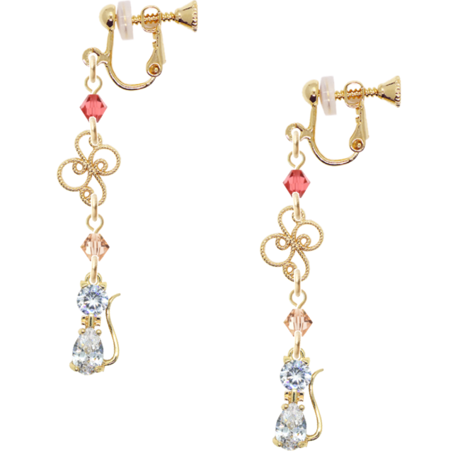 雪の調べをまとう猫のイヤリング ― パパラチアの灯(16金メッキ)