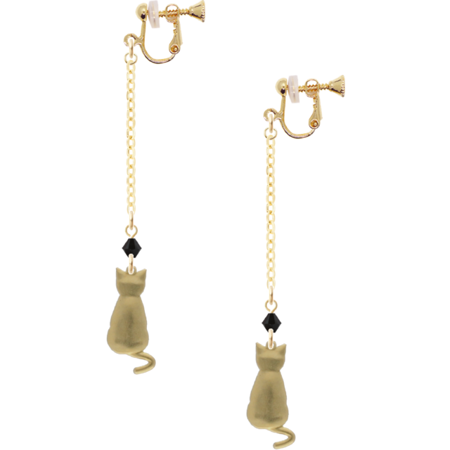 影をまとう猫のイヤリング(スワロフスキー ジェット/16金メッキ)