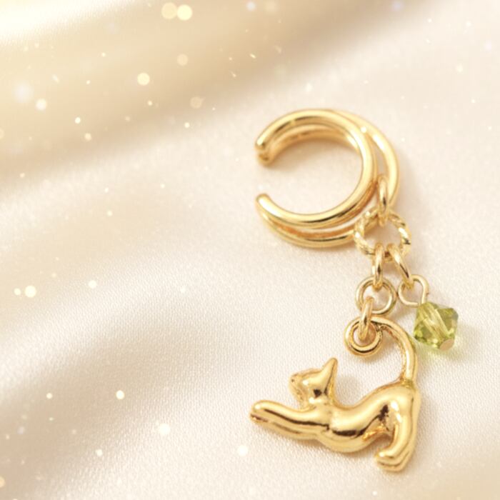 光をまとって遊ぶ猫のイヤカフ(2連デザイン/スワロフスキー ジョンキル)