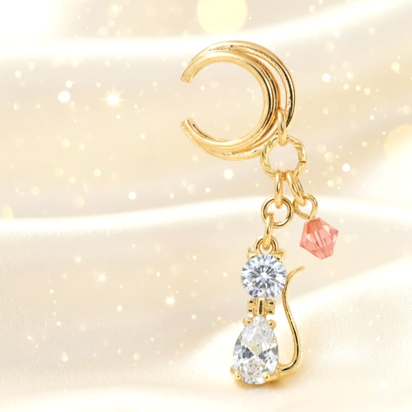 夕陽の猫のイヤカフ(2連デザイン/ パパラチア)