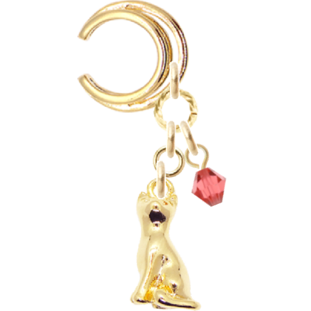 茜色の猫のイヤカフ(2連デザイン/スワロフスキー パパラチア)