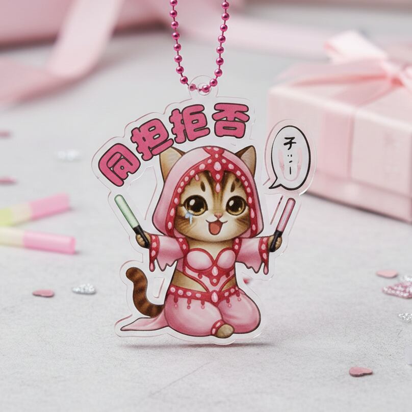 【舌打ち注意】同担拒否にゃんこ アクリルキーチャーム(ピンク)